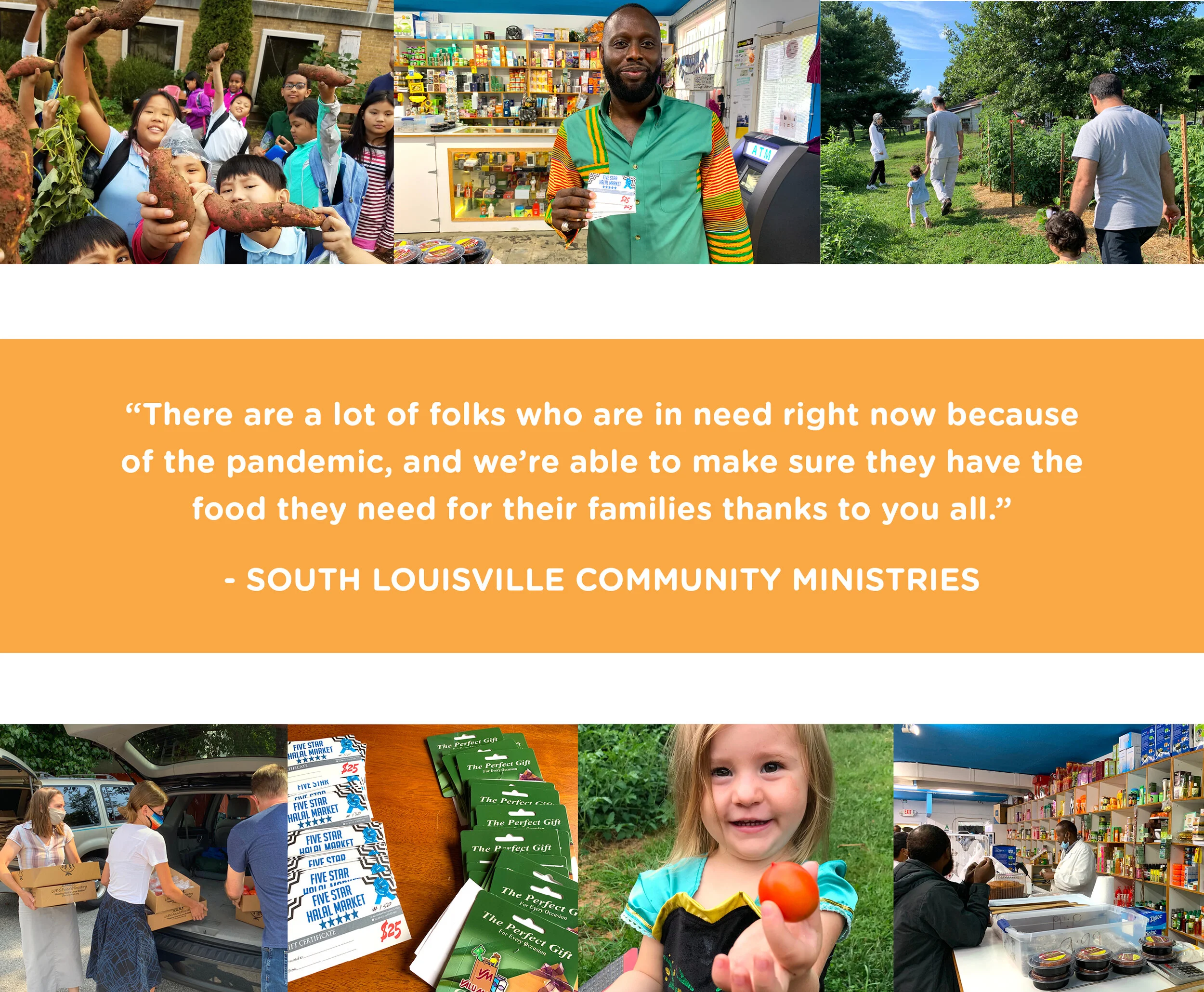 Many people lost their food security because of reduced or lost income, and you allowed us to help 100+ families a week through a food pantry in California, support local markets by supplying 117 food gift cards to refugee families, and equip 40 families to grow their own food through community gardens.