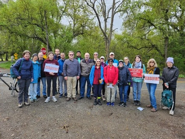 In Davis, at least 20 people participated from seven different local congregations, and in San Diego, the walk was rained out and then rescheduled, and 80 people still showed up despite the change of plans and walked 22 miles to approximate the journey from Gaza City in the north to Rafah in the south.